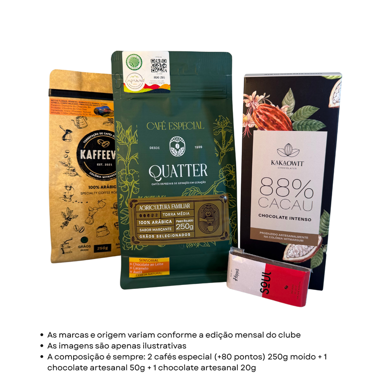 A mesma box do Plano Explorador do clube Cacafé, vendida de forma avulsa. A composição é fixa; apenas marcas e origens dos produtos variam conforme a edição mensal.
